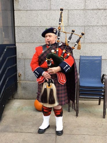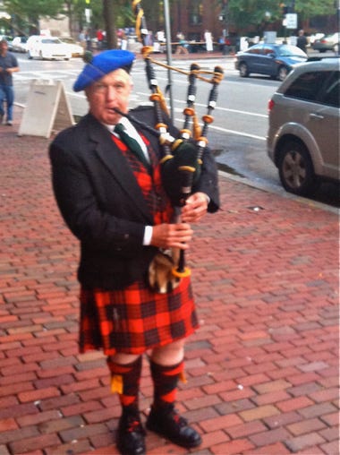 Sept. 2013, Piping for a Book Launch at Bonobo’s, Dartmouth St, Copley Sq.