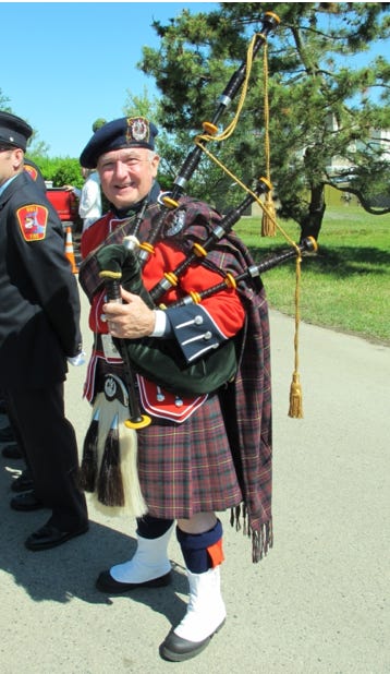 Aug 2001 With Lowland Pipes at The Pipers Gathering, North Hero, VT